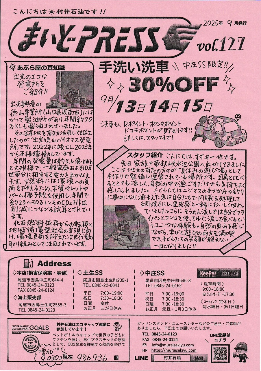 村井石油株式会社 | 因島近郊でカーコーティング・タイヤ・給油・カーメンテナンスは村井石油にお任せください!